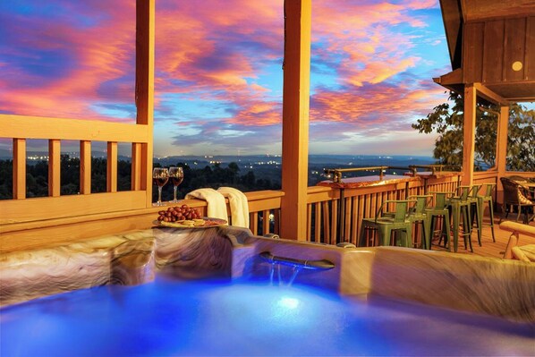 "Our stay was fabulous from beginning to end!" Enjoy breathtaking views overlooking fireworks from Dollywood and the misty Smoky mountain range at this beautiful cabin retreat! Families will enjoy the expansive, open floorplan, warm fireplace, cozy seating and beautiful outdoor dining and hot tubClose proximity to everything Pigeon Forge has to offer. 1.5 miles to Dollywood, 12 miles to Gatlinburg and Smoky Mountain National Park. Sunset Lodge will deliver your family's next priceless memories.