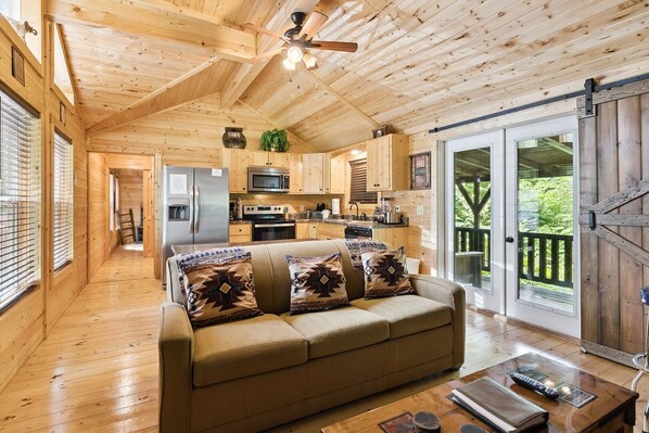 Mountain Angel is a brand NEW 2 bed/1 bath cabin nestled in the Sky Harbor community.