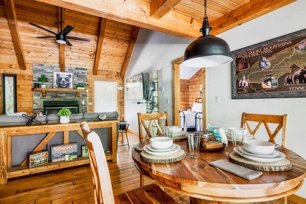 Gather around the stunning living room and wind down after a busy day hiking the Great Smoky Mountains.
