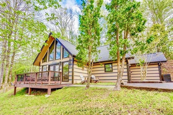 Refresh in the brand new hot tub, or destress in the rocking chairs or at the cozy fire pit. For your convenience and entertainment, the cabin has a full kitchen, outdoor grill, dining tables inside and out, washer and dryer, plus a 400-game Arcade console (favorite is Galaga or PacMan!), foosball table, corn hole, board games, and book nook.