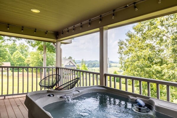 Enjoy unforgettable evenings in the spacious backyard, perfect for stargazing or gathering around with loved ones. Melt your stress away in the private hot tub, then fire up the BBQ grill on the outdoor deck for a family cookout. For fun-filled moments, challenge each other to cornhole, test your balance on the ropes course and slackline, or enjoy a friendly game of life-size Connect 4. This outdoor space is your go-to spot for adventure, relaxation, and memory-making in the Smoky Mountains.