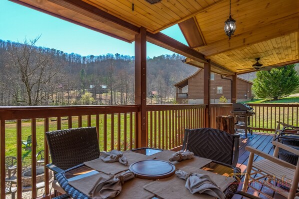 Tennessee Two Bedroom Vacation Rental Rental-Bear Run Unit 71 è un rifugio da tutto. Venite a godervi questo noleggio di 2 camere da letto e 2 bagni cabina che si trova a circa 9 miglia dalla strada principale situata nella Wears Valley Area. Sei a pochi minuti dal Parco Nazionale Great Smoky Mountains. C'è una cucina aggiornata con elettrodomestici in acciaio inossidabile e posti a sedere per 6 nella sala da pranzo. Il soggiorno dispone di un televisore a schermo piatto da 55 pollici con un camino tutto l'anno situato al di sotto. C'è sonno extra all'interno del soggiorno con un divano letto queen size. La master suite dispone di un letto king size, di un bagno privato con cabina doccia e di una Smart TV da 32 pollici. La seconda camera da letto offre un letto queen size, un televisore a schermo piatto da 32 pollici e l'accesso ad un bagno fuori dalla hall che è una combinazione vasca / doccia. C'è un sacco di divertimento a Bear Run con accesso a Internet, tavolo Fooseball e persino un firepit all'aperto situato dietro la cabina. Lo spazio esterno è dove divertirsi con l'accesso a un laghetto di pesca ben fornito, buche per le scarpe da cavallo in cabina e una griglia a gas per godersi le uscite di cucina. C'è un torrente situato accanto alla cabina, così puoi sentire i suoni e rilassarti sotto il portico coperto. Prendi il caffè del mattino con vista sulla valle e ascolta i suoni del torrente. Porta la tua famiglia e approfitta di tutte le offerte di Bear Run.
