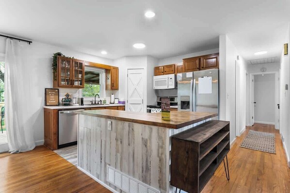 Inside, you will find sun-filled living spaces, a fresh & fully-equipped kitchen, dining room, high-speed WiFi, Smart TV so you can login to your account and stream your favorite show, read a book in our sunroom or in our backyard for warm weather hangs.