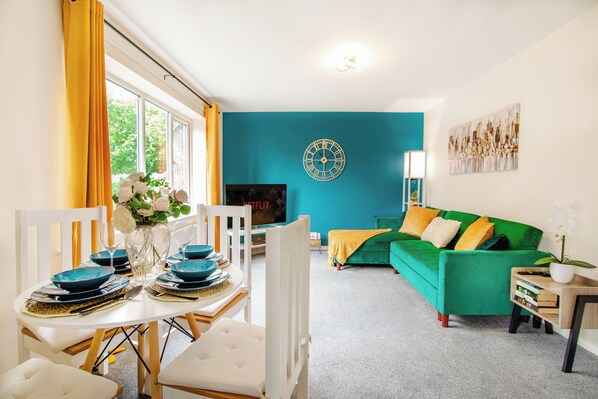 The Property 🌟 Discover this bright and spacious apartment with two comfortable sleeping areas, featuring three double beds 🛌 and a cosy sofa bed 🛋️ in the living room.