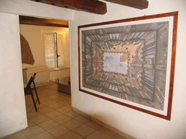 In posizione centralissima appartamentoricavato dall'atrio del palazzo quindi con alcuni punti di altezza poco superiore a 180 cm, si sconsiglia quindi per persone più alte. Caratteristico e con l'essenziale per brevi soggiorni il Mezzanino offre tutti i comfort necessari.