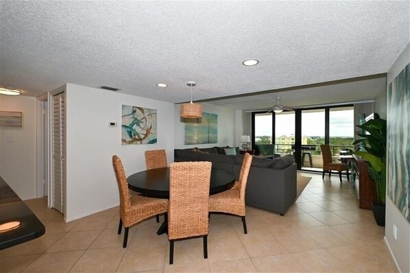 As you enter the condo, your eye is immediately drawn to the bright and cheery living space and wall of sliding glass doors that open up to the balcony. Southern exposurebathes the condo in sunshine through large sliding glass doors in each room. The sliding gass doors open to create an indoor/outdoor living space where you can relax with picturesque views of the Intercoastal Waterway and the Gulf of Mexico. Prepare your favorite meals in the fully stocked kitchen connected to the living space. The large master suite boasts an ensuite bathroom with separate dressing area, walk-in closet and balcony access. The spacious guest bedroom also has a walk-in closet and balcony access. Complementary Wi-Fi is provided in the condo and through out The Anchorage complex.