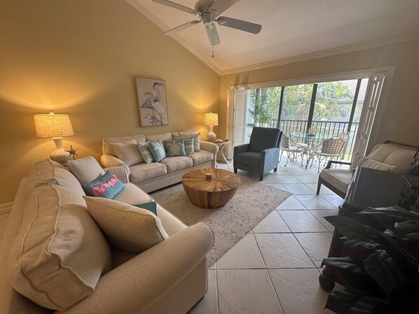 Venite a godervi la tranquillità di questa spaziosa unità con due camere da letto (quattro posti letto), un appartamento al secondo piano situato nel giardino del complesso che si affaccia su un cortile paesaggistico. L'unità si trova a breve distanza dal campo da tennis, dalla scintillante piscina di acqua salata e dalla spa e dalla rinomata spiaggia di sabbia bianca di Siesta Key. E 'stato recentemente ristrutturato con piastrelle in tutto e tutti i comfort che uno vorrebbe per una vacanza piacevole tra cui chiamate in tutto il Nord America, Wi-Fi e TV ad alta definizione più lettore DVD in salotto e TV in ogni camera da letto. La cucina ben attrezzata ha tutto il necessario per preparare un pasto gourmet o uno spuntino leggero, oltre a un grill all'aperto e una coperta a meno di 100 piedi dall'unità. Tutti gli elettrodomestici incluso il condizionatore d'aria e la lavatrice e l'asciugatrice sono stati recentemente aggiornati.