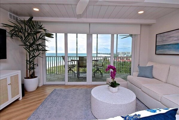 Perfect for a family vacation or a romantic getaway. Gorgeous 2 bedroom, 2 bath condo at the luxurious Crystal Sands resort directly on Crescent Beach in Siesta Key. This 8th floor tower unit has just been beautifully remodeled to include all new furnishings, appliances, flooring, etc. Enjoy magnificent gulf views from every room. A spacious screened in lanai spans the width of the condo with access from the living room and both bedrooms. Just steps away from the powdery white sands of Siesta Key. Relax on the private beach with loungers already set up for you. 2 heated swimming pools are provided for your enjoyment, one overlooking the beach. Free WiFi and cable are provided and TV's are in the living room & both bedrooms. Washer & dryer are in the unit so you can pack light.