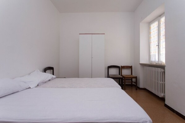 Descrizione: Piano terra. Soggiorno con divano, tavolo da pranzo ed angolo cottura – camera padronale con letto matrimoniale – seconda camera con letto matrimoniale – bagno con box doccia – terrazzino sul fronte della casa. Posto auto. Lavatrice. Animali non ammessi.