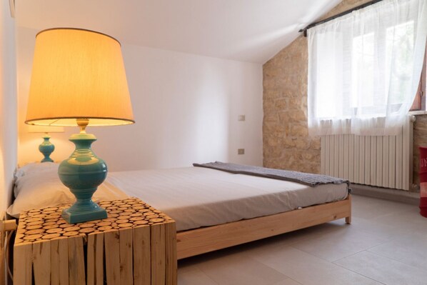 Descrizione: Primo piano di una casa colonica, in pietra del Conero completamente ristrutturata. Ingresso indipendente, soggiorno con divani e camino, cucina e zona pranzo. Camera matrimoniale con bagno di servizio, camera con due letti singoli, bagno con doccia. Terrazzo panoramico perimetrale. Giardino attrezzato di gazebo con tavolo e sedie per poter mangiare fuori. Lavatrice. WI-FI. Doppio posto auto.