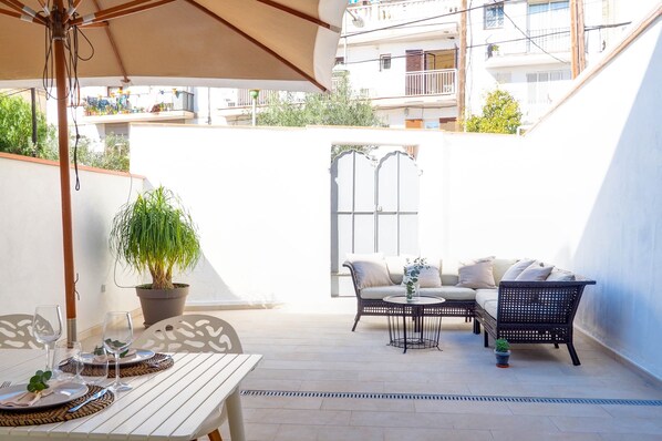 From the living room and from the secondary bedroom, you have access to the private patio where you will find a good place to rest with complete privacy in the center of Sitges.