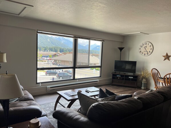 L'appartamento ha tutto il necessario per sentirsi a proprio agio e sentirsi a casa. La cucina è completamente fornita di tutto il necessario per preparare un pasto, basta portare cibo. Forniamo spezie di base, caffè, tè e cacao. Il soggiorno ha una vista spettacolare sulle montagne circostanti, sull'oceano e su Crescent Harbour. C'è una tv 42 "con directv e un lettore dvd con una selezione di film tra cui scegliere. E se ne hai bisogno, è disponibile internet wireless.