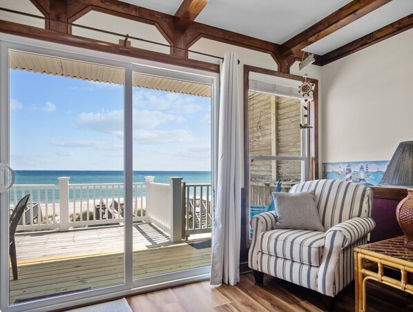 Come si lascia l'area del garage si può prendere la scalinata moquette fino al primo livello di vita. Questo livello ha due ampie camere da letto con un bagno completo tra di loro. La camera da letto lato dell'oceano ha un letto matrimoniale con un grande armadio, ventilatore a soffitto e TV a schermo piatto. C'è un fronte oceano di balcone privato con posti a sedere appena fuori le porte scorrevoli in vetro di questa camera da letto.