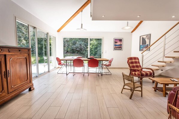 HOSSEGOR - Tra lago e mare, nel quartiere dei fiori, vicino alla bianca spiaggia del lago marino, bella villa del tipo basco-landaise degli anni '30 su un unico livello con seminterrato, costruita su circa 1000 m² di terreno boschivo . La casa è stata ampliata nel 2013 nel soggiorno e nel 2018 nella parte al piano terra.