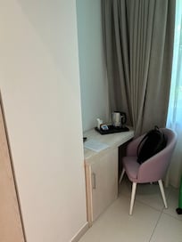 La struttura e' ubicata al primo piano di una palazzina,per raggiungere la reception bisogna fare una rampa di scale ripida,in quanto manca l' ascensore, difficoltoso con le valigie o se si hanno problemi motori.Ci e' stata assegnata una camera piccolissima non corrispondente a quanto prenotato,inadeguata per 2 persone.Davanti alle nostre lamentele il giorno seguente ci e' stata cambiata la stanza,piu' spaziosa e confortevole.Per quanto riguarda la colazione al momento del check in ci viene chiesto di indicare in via preventiva cosa e quanto avremmo consumato tra una cerchia ristretta di prodotti,richiesta mai avuta in nessun hotel dove ho pernottato in tutto il mondo,anche dopo la pandemia.Consiglio la struttura solo per la posizione,ma non per il prezzo,eccessivo per il servizi offerti.