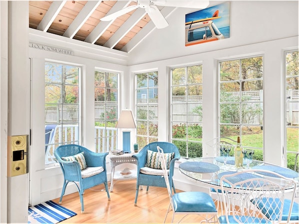 Acqua calda, tramonti e chilometri di spiaggia su Nantucket Sound ti aspettano proprio dietro l'angolo. La vicinanza alla spiaggia è così vicina che frequenti le visite in spiaggia e sarai contento di quanto sia facile andare avanti e indietro. Questo ranch di Cape Cod aggiornato per famiglie ha un grande ponte per intrattenere all'aperto circondato da giardini perenni paesaggistici e cortile in un ambiente privato. La cucina gourmet rinnovata, che conduce a una veranda a 3 stagioni, entrambe con soffitti a volta, sono luminose con molta luce naturale e sicuramente apprezzeranno. 3 camere da letto con aria condizionata, 2 bagni completi, una grande doccia esterna e una lavanderia sullo stesso piano contribuiscono a vivere in modo confortevole. Il design di questa casa offre privacy in quanto le due camere matrimoniali e i bagni sono disposti in ali separate. La casa ha pavimenti in parquet con bagni appena piastrellati. WiFi gratuito anche. Questa casa dispone di accesso senza chiave per la vostra comodità al momento del check-in / check-out il giorno di arrivo / partenza. 15:00 check-in / 10AM check-out.