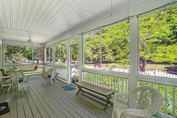 Screened-in front porch overlooking the park - Perfect for summertime brunches