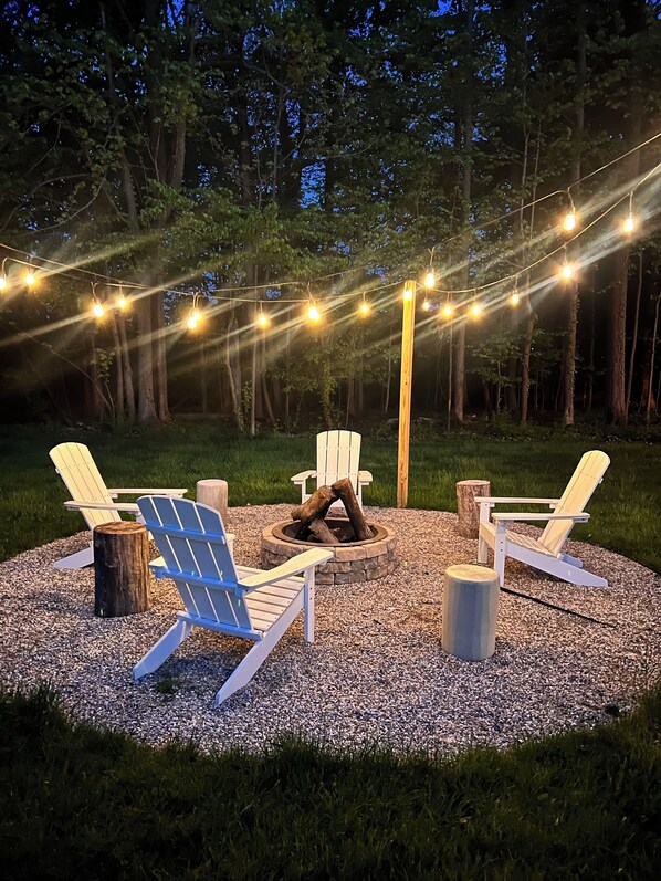 The open concept kitchen/dining/living room is the perfect gathering space for your family. The sliding glass doors provide amazing light and a spectacular view to the private woods. Wake up to deer outside, waiting to greet you while you drink your coffee. Spend your evening around the new cozy fire pit.
