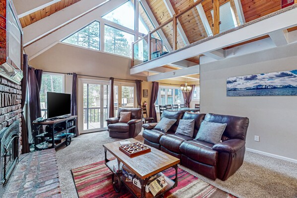 Enjoy multiple outdoor living spaces, including a front porch, spacious deck, and backyard patio. Soak in the brand-new hot tub after a day on the mountain, fire up the gas grill for a cookout, and dine al fresco at the table for six under the pines.