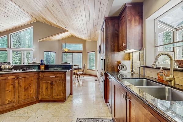 Whoever's on cooking duty won't find it a chore in the spectacular chef's kitchen, which features stainless steel appliances and handsome granite countertops. There's also an outdoor gas grill for those who prefer their meals alfresco.