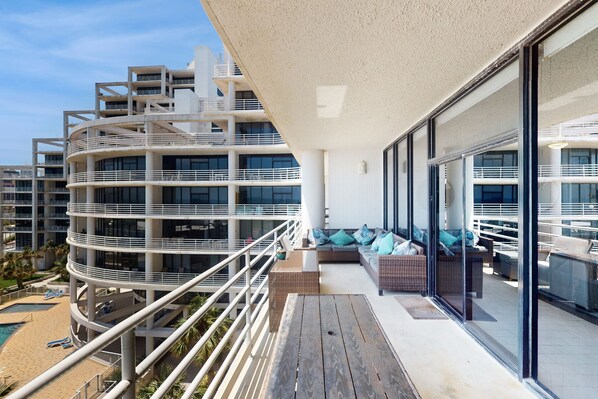 A second spacious balcony boasts incredible views of the Gulf, bay, and resort grounds. Dine alfresco at the table for four.