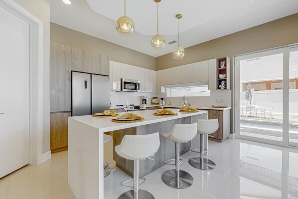 Sleek and stylish, this brand-new, three-bedroom home awaits to make all your South Padre Island vacation dreams a reality. With an ideal location, walking distance from the beach, shops, restaurants, bars, and other attractions, you’re perfectly situated for a relaxing, no-stress stay. Start the day in your private, enclosed backyard with a cup of coffee and a dip in the sparkling pool.
