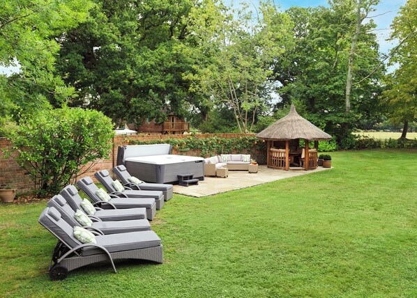 Perhaps the most exciting feature of this enchanting property is the walled garden with its seating area and beautiful thatched hut, which offers an al fresco dining option for up to 8 people - heated for those chillier evenings. However, the highlight has to be the large luxurious Hot Tub Jacuzzi with its multitude of settings - you can tailor your bubbles to suit …all at a relaxing 38 degrees!