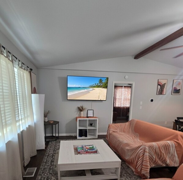 Rainy day? No problem! Guests can enjoy our home inside playing board games, cards, or relaxing while watching a movie on our 65-in TV in the living room. Each bedroom is also equipped with its own TV with access to Netflix and other major streaming apps.