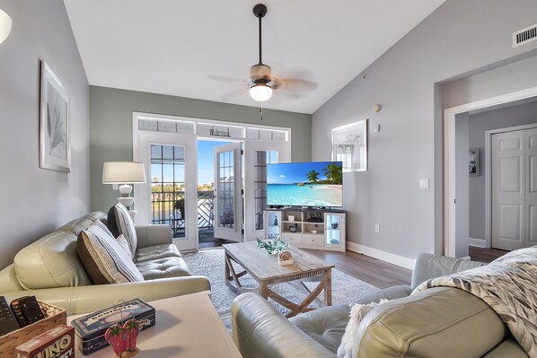 Un balcone privato piastrellato permette di prendere in splendida vista del lago, mare, e la piscina, che viene riscaldata durante l'inverno. La camera matrimoniale è un rifugio tropicale con un letto matrimoniale. Il bagno principale è stato completamente ristrutturato e la nostra nuova cabina doccia invita a rilassarsi! La seconda camera ha un due letti singoli e nello studio è un letto matrimoniale.