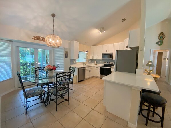 Beautiful home, secure fenced in private back yard. One tip when you walk to the beach(literally two blocks easy walk) go left out of the driveway then right straight to the beach.if you go right to the beach it's a ton of steps at that beach access. Plenty of cookware and dinnerware. Excellent location for the city and Matanza inlet. Beautiful white sand beach and very mild waves. In comparison Anastasia park was very rough surf the same day. Definitely take advantage of the beach at the house. Also beach ramp two blocks away if you prefer to drive onto the beach. Overall great stay and zero issues. Wonderful that the cleaning fee actually includes cleaning. No crazy check out cleaning process. Neighbor did tell us previous owner had left their cats behind. They do live in the hedge on the left of the house. Beautiful cats but very shy. We enjoyed leaving them food. Just an awesome vacation and gorgeous property.