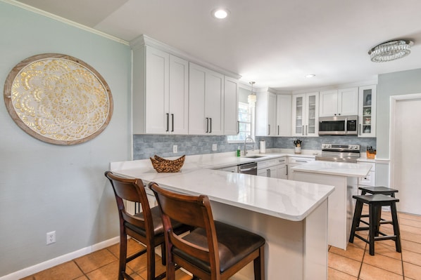 With five bedrooms, all king beds, and a bright and open floor plan in the living room, there is plenty of space for everyone to stretch out and relax.