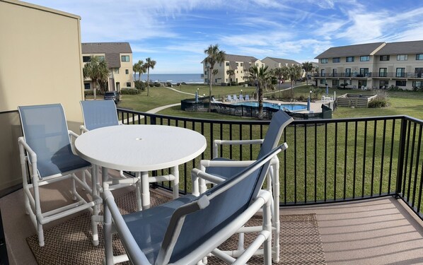 The condo was very clean - most important to us! It had a lot of room. We loved the balcony with table and chairs. The view was lovely. We highly recommend this condo!