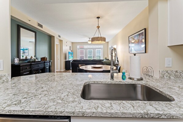 Very modern & clean unit, beautiful kitchen & masterbath, true to photos. Backing to the pool & very close to the pier, main road for restaurants & shopping was easy & safe to walk to. Our family consisted of adults, teenagers & an elderly family member, it meet all our needs very well. Would definitely recommend & rent again, relaxing condo!