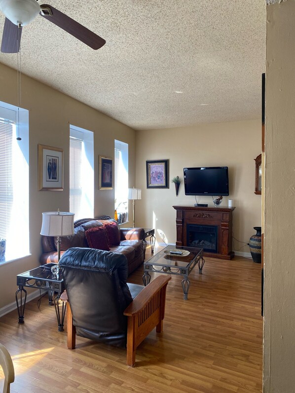 The apartment is an upstairs unit. We rented it for 6 nights. It is located very close to the interstate and other reviews had mentioned hearing the traffic at night but that was not an issue for any of us. After checking in we found we did not have enough towels for the five of us and there weren’t sheets for the hideaway mattress. I contacted the property manager and within a couple hours, they were dropped off at the property without issues. The entire apartment really just needs a deep clean and it would make for a nice apartment. We did not have major issues with the cleanliness other than the couch. Another reviewer had stated it smelled like cat urine and at the time stayed, it still did. We stayed during one of the hottest weeks and outside temps stayed in the 80’s-90’s so the AC was on constantly but it never got the apartment cooler than 74. I hope this review helps. We would stay here again.