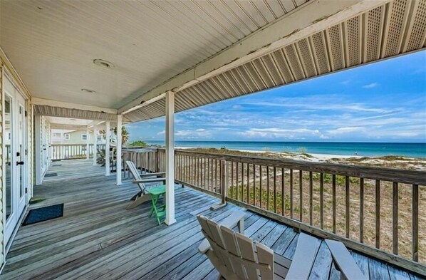 If you're looking for low key place this gulf front duplex is perfect. Just steps away from the sand and awesome views from deck area.