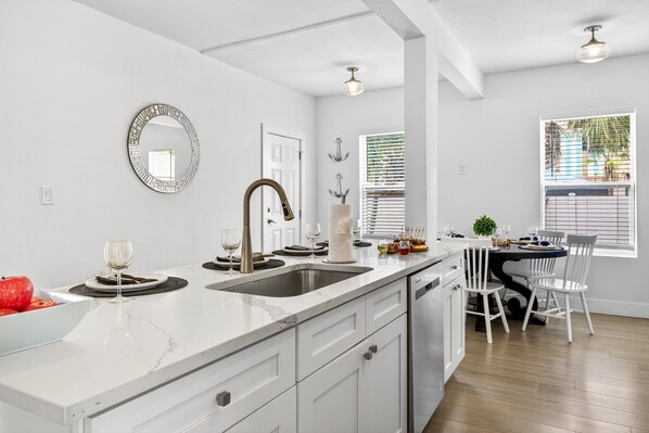 We had a wonderful stay at this 3-bedroom house in Florida! The home comfortably fit our group of 7, with plenty of parking space for up to 3 cars. Everything was very clean and well-organized, and the spacious dining table became our favorite spot for family board games in the evenings.The house has clearly been recently remodeled — the new flooring and fresh interior made it feel modern and welcoming. It’s also in a fantastic location: just a short 5-minute walk to the beach and surrounded by many delicious local restaurants.There were only a couple of small drawbacks: the shower in the master bathroom tends to let water flow out easily, and the sink water pressure was a bit weak. Other than that, everything was perfect.Overall, this was a great place for a family vacation or a trip with friends. We would definitely consider staying here again!