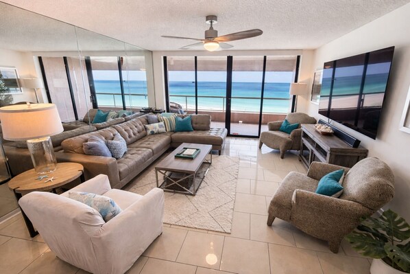 Once inside the condo, you'll enjoy the amazing open floor plan with an exquisite beach backdrop from every area! Retreat to the spacious master bedroom, which offers sliding glass doors leading directly to the Gulf front balcony, a King bed, a personal work desk, and an ensuite bathroom! The ensuite bathroom features a granite double vanity, a separate shower, and a decadent soaking tub. The second bedroom includes 1 queen bed, 1 twin bed, and an attached bathroom that includes a shower.