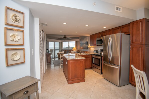 The stay overall was great but there were a few things that made it a challenge which is why I rated it 4 stars. We intended to cook, but the kitchen did not have a disposal so after the first time we had to clean dinner dishes we decided to eat out. The wifi in our unit did not work and we were give the password for the unit next door. To get a strong enough signal to work we had to work on the balcony or in the bedroom which meant working in bed. Made it really tough. We were told it was fixed but it never was. We also discovered the ceiling fan in the guest room did not work and we had to pull out the box fan they had available. It was just these small things that made it a little hard to relax. Location was amazing and we loved using the patio looking at the bay.