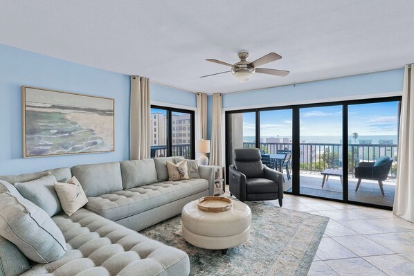 Start your mornings on the private balcony with sunrise views over the Intracoastal, or wind down in the evening after a sunset stroll along the beach. The wide sandy shoreline is just a short walk across the boulevard, making beach days easy and spontaneous.