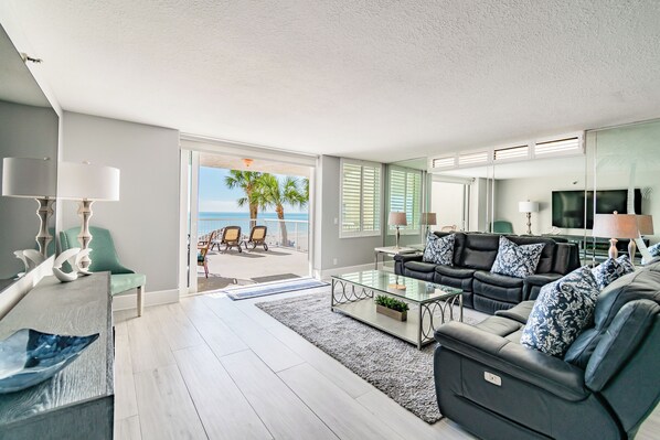 Seaview è un'attraente associazione condominiale di 25 unità situata direttamente sulla splendida spiaggia del Golfo del Messico di Madeira. Seaview # 105 è un ampio condominio al primo piano situato su un angolo che beneficia di un balcone molto grande che si affaccia direttamente sulla piscina e sulla spiaggia.