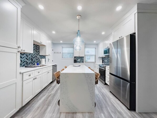 This place is so cute and comfortable. Decorated perfectly. Close to everything and deck is great place to watch 3 different fireworks shows. We will definitely be back, we loved everything about this place and has a pool. Walked to Ricks Reef everyday for Breakfast.