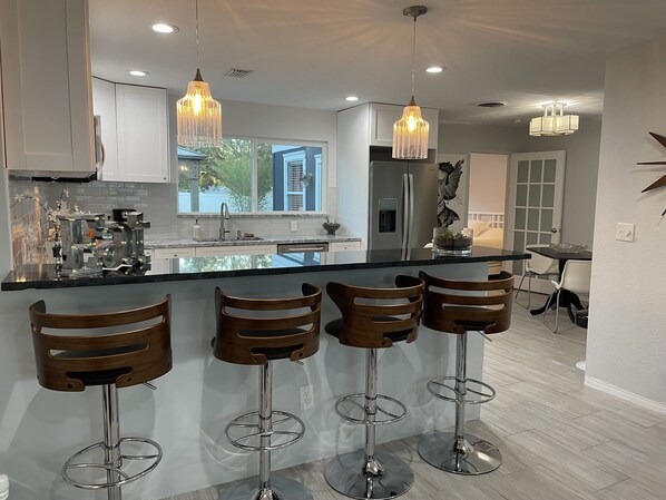 Our month-long stay was delightful! The house was very clean and well stocked with just about everything we could need for an extended stay. The beds and sheets were incredibly comfortable which is very important for us. The owner was wonderful and went out of her way to accommodate our requests. She even had a bottle of organic wine waiting for us when we arrived. Love the extra special hospitality! The house was conveniently located within walking distance of the adorable downtown Dunedin including shops, restaurants, and entertainment. With less than a 15-minute drive to Clearwater Beach, we could not have asked for a better location! We highly recommend booking this home for your next VRBO rental!