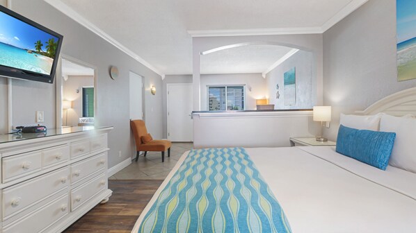 La nostra unità standard è un paradiso per gli osservatori di persone. Una vista sulla piscina e tutta la sua attività. Questa camera dispone di un letto queen size, 365 piedi quadrati di spazio vitale, bagno privato completamente fornito con asciugamani e articoli da toeletta, angolo cottura, TV a schermo piatto. La zona giorno separata ha un divano letto a una piazza e una zona pranzo. Balcone esterno in comune con posti a sedere per due. Può ospitare fino a 4 persone. Il personale in loco fornisce il servizio di pulizia giornaliero in modo da potervi rilassare!