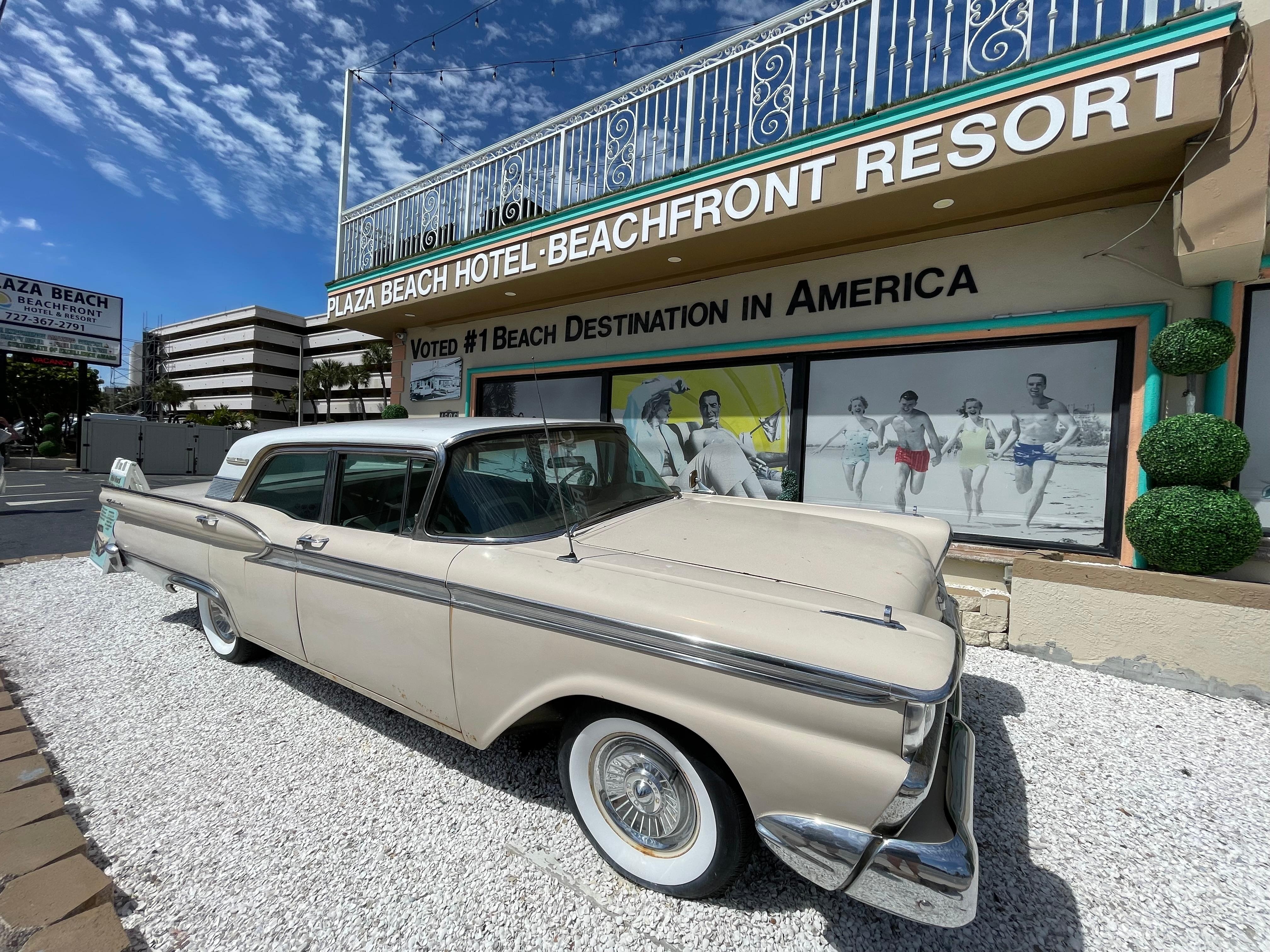 We enjoyed our stay at the Plaza Beach Resort. It was clean and had tons of storage space, comfortable bed, cute retro decor, ceiling fan, hot shower, large refrigerator, right on the beautiful white sand beach. It was only about a block away from the Sunrunner bus stop so public transportation is easy. It was perfect for our first trip to St Pete's Beach.