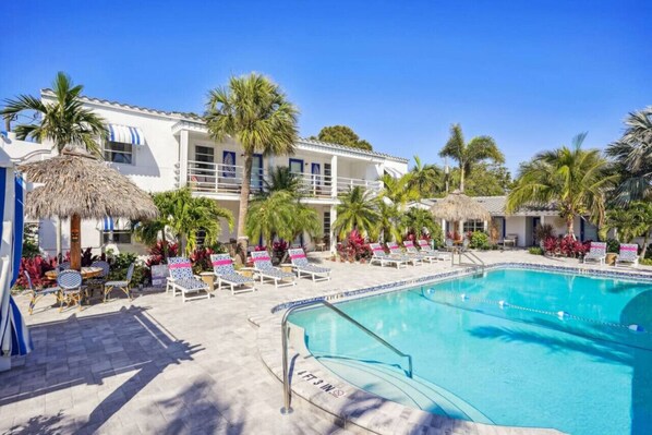 * Top reasons to book include a sparkling heated pool, shuffleboard, BBQ area, beach access right across the street, and proximity to fantastic restaurants, shopping, and activities.