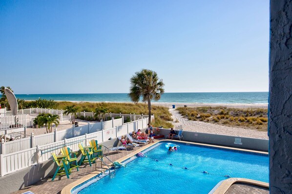 Top Floor Beachfront Views. Heated Pool. Tiki Bar. Soft White Sands!
