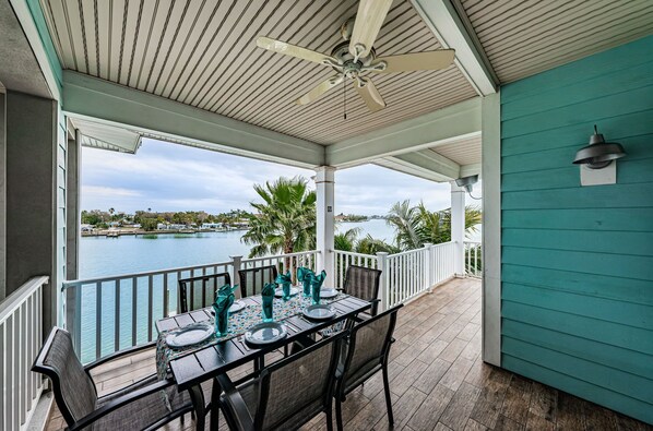 Enjoy a formal dining experience right at home in the bright dining area, which offers beautiful water views and comfortable seating for six guests.