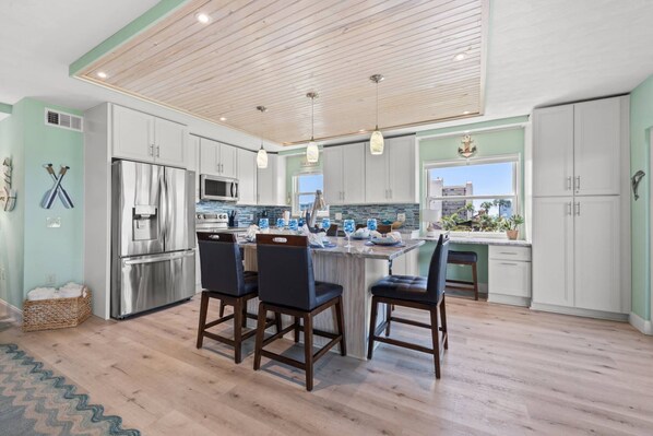 -Eat in Kitchen Offers Large Island Style Table with seating for 6