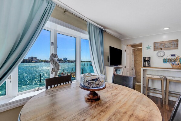 • Dining: Enjoy a meal at the dining nook for 4 with unforgettable water views.