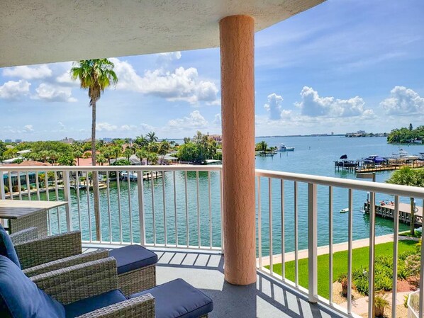 • Two Private Balconies with Breathtaking Views – Bayfront Balcony – Overlooks Boca Ciega Bay, a prime spot for manatee and dolphin sightings. Gulf-Facing Balcony – Watch stunning sunsets while sipping your favorite drink.